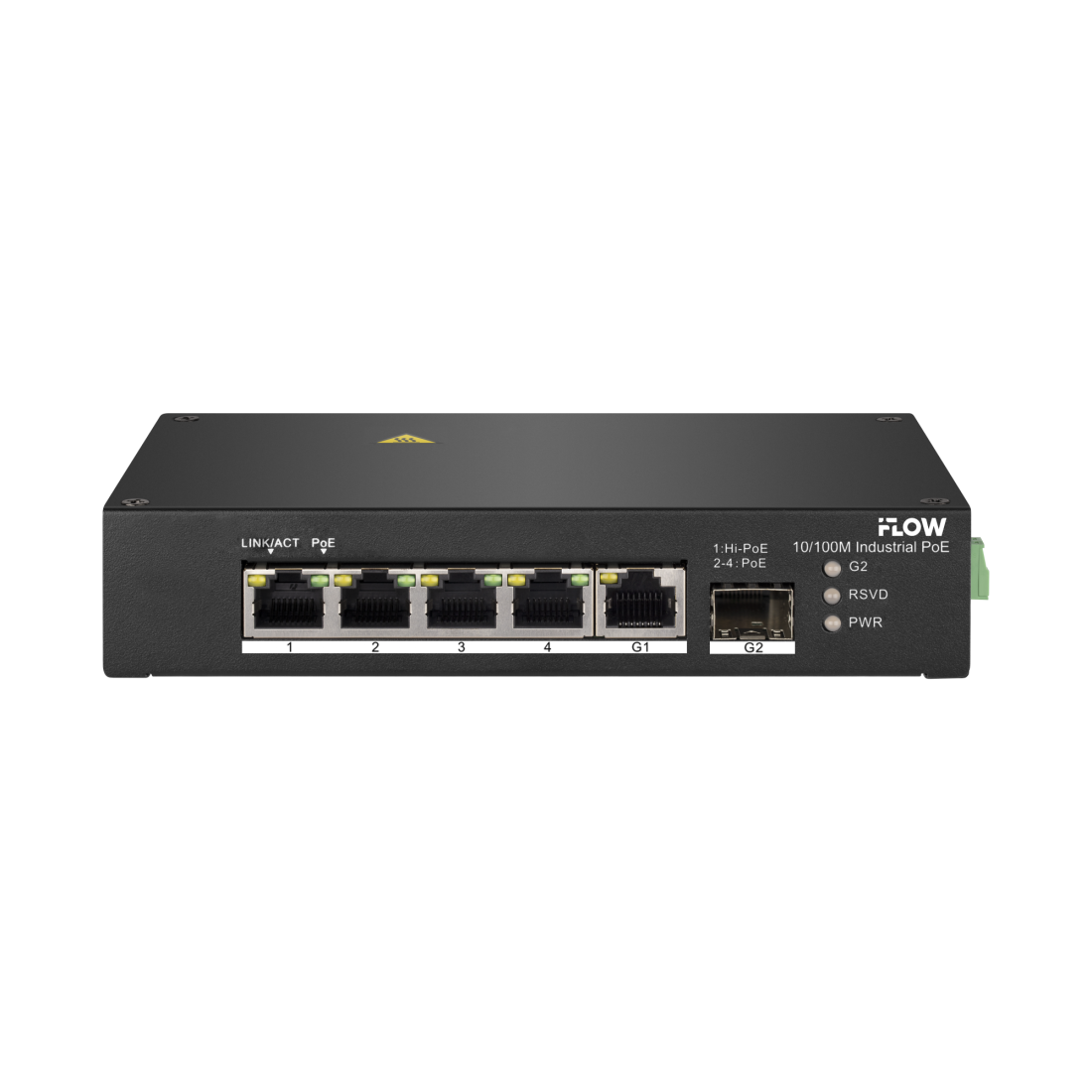 Неуправляемый промышленный PoE-коммутатор на 4 порта 10/100M RJ45 PoE, 1 uplink порт 1000 Мбит/с RJ45, 1 uplink порт 1000 Мбит/с SFP